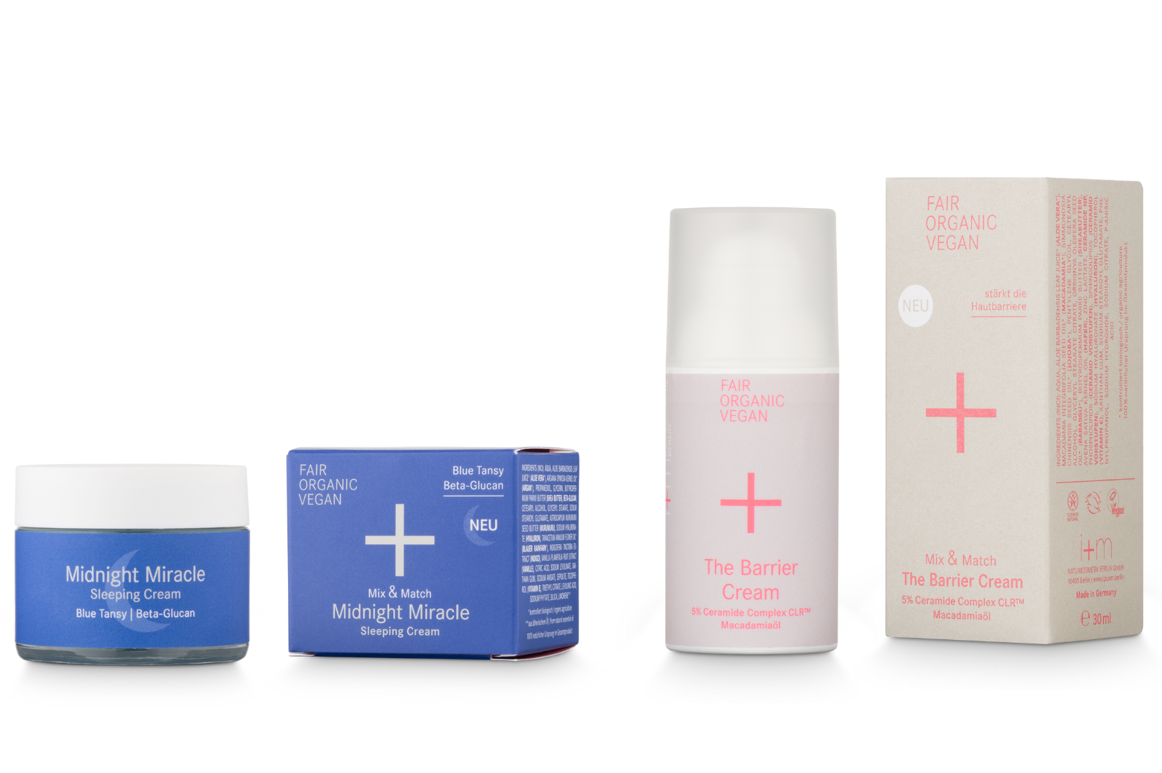 Die Produkte der Mix & Match Reihe von I+M lassen sich frei kombinieren – je nach individuellem Hautbedürfnis entsteht so eine maßgeschneiderte Pflegeroutine für jeden Hauttyp.