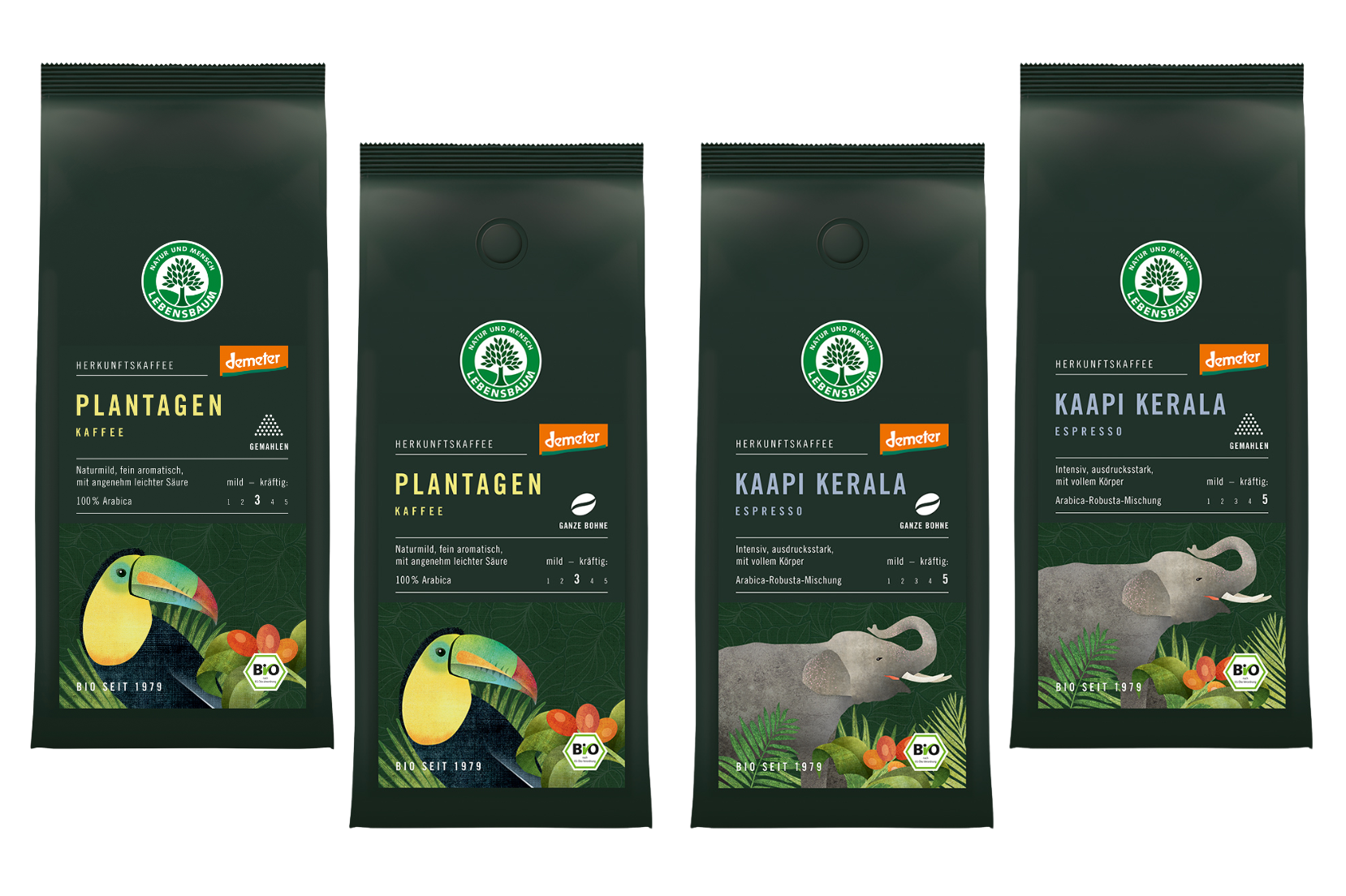 Sein Temperament verdankt dieser Demeter-Espresso einer kraftvollen Mischung aus Arabica- und Robusta-Bohnen. “Kaapi” nenn die südlichen Bauern den Kaffee, den sie für uns in der tropischen Gebirgsregion Kerala anbauen. Mit den sanften Methoden des Demeter-Landbaus gelingt es ihnen, die Vielfalt und Schönheit dieser Landschaft zu erhalten. Ausladende Schattenbäume beugen sich über die Kaffeesträucher, deren Früchte ganz in Ruhe heranreifen. Nur die Bohnen der reifen Kaffeekirschen – von Hand gepflückt und sorgsam verlesen – finden ihren Weg in unseren Espresso.