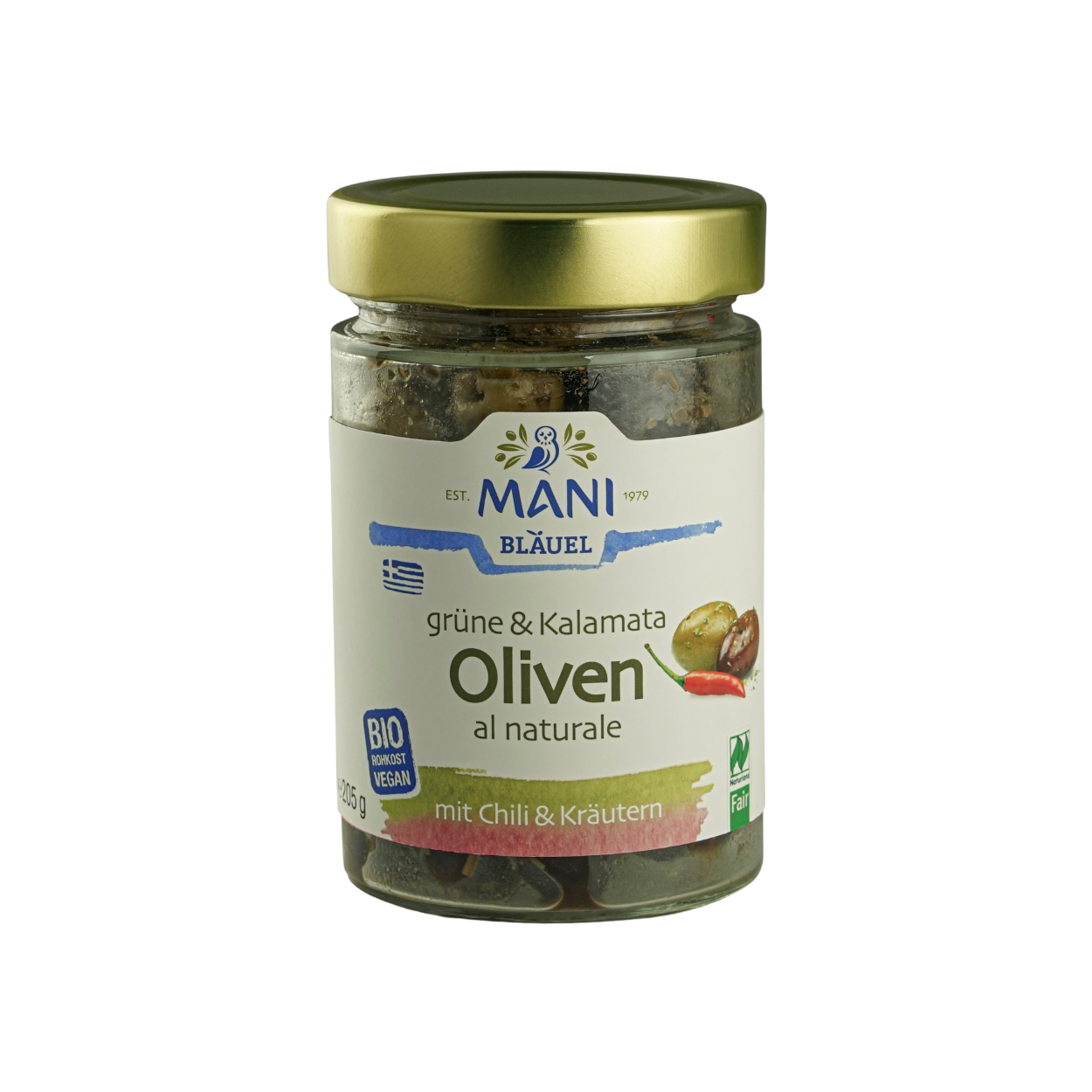 MANI Bläuel ist der Bio-Pionier für griechischen Genuss: Die vielfältigen MANI Köstlichkeiten stehen für höchste Qualität und Respekt für Mensch und Natur. Das Geheimnis: Der traditionelle Anbau und die besonders schonende Verarbeitung. Das Ergebnis sind vielfach ausgezeichnete aromatische Bio-Olivenöle, naturreine Bio-Olivenprodukte in Rohkost-Qualität sowie schmackhafte Bio-Mezes (mediterrane Vorspeisen). Das vielseitige MANI Sortiment lässt Genießer-Herzen höherschlagen und bringt die griechische Sonne auf den heimischen Teller.