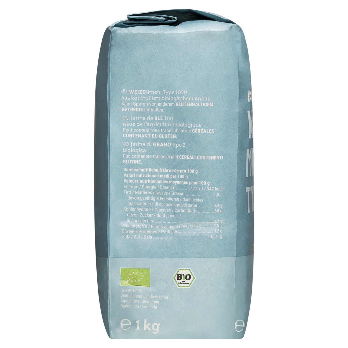 Weizenmehl aus Deutschland in Biokreis-Qualität, leicht ausgemahlen, mit Bestandteilen des ganzen Korns, hervorragende Backeigenschaften für Brot, Brötchen, salziges und süßes Gebäck.