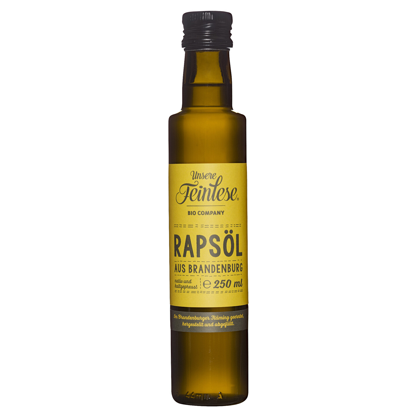 Unsere Feinlese natives Rapsöl aus Kaltpressung stammt aus Brandenburg und überzeugt mit saatig-nussigem Aroma auch auf geröstetem Weißbrot, ist auch für Salate, Dips und Verfeinern geeinget. Nicht erhitzen!